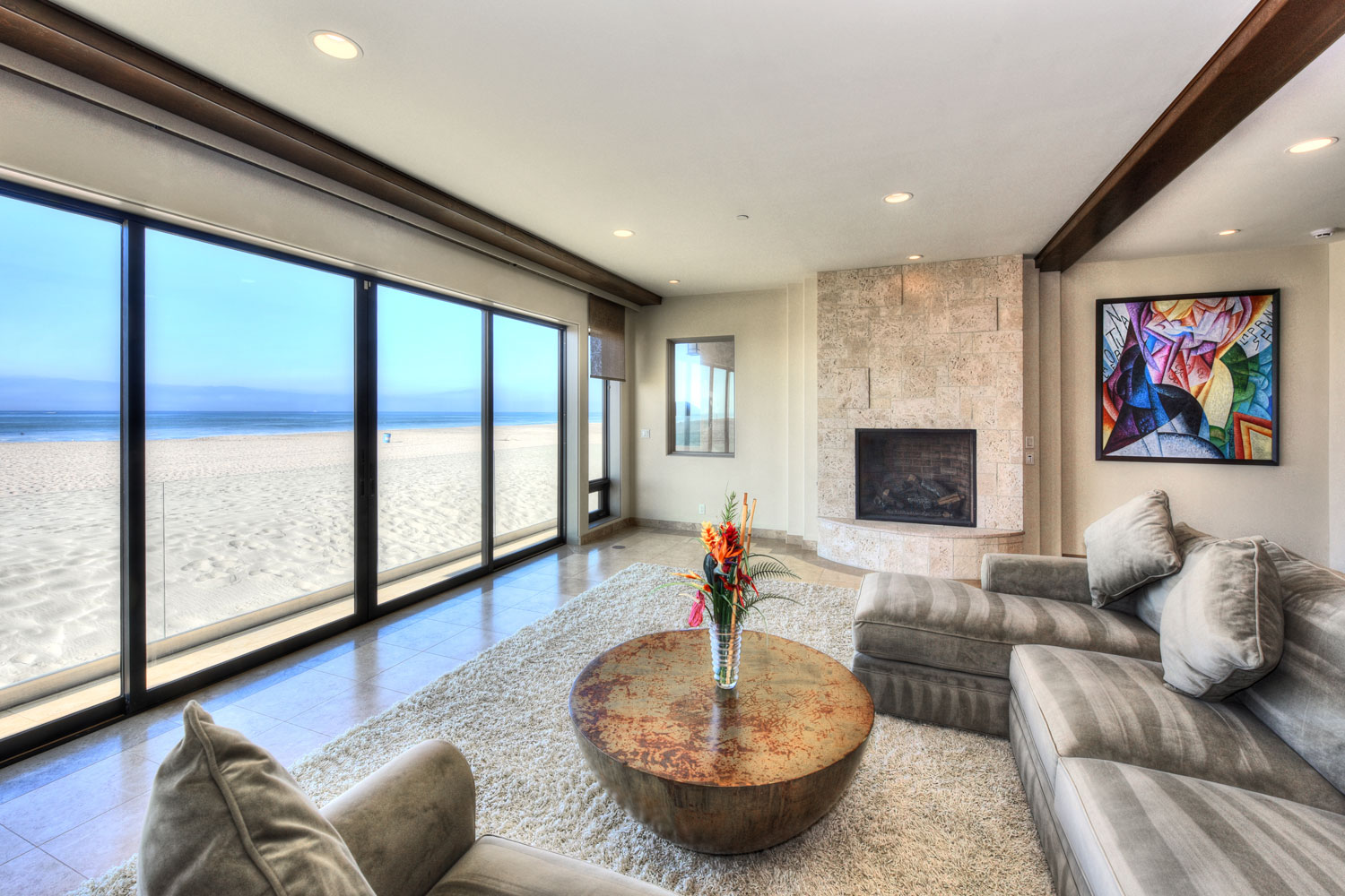 Unique custom architectural beachfront home at Mandalay Beach. Great floor plan flow from every room. Plentiful natural light and high ceilings. Thermostat controlled fireplace heat source system, no-noise, no air flow. Extra high ceiling Master Bedroom Suite has library cat-walk high above with sweeping scenic ocean views. Looking for serene, tranquil, calm, private; with panoramic ocean, island, whitewater, sunset, and coastal vistas out over the Santa Barbara channel to the Channel Islands and the Ventura foothills? This is it!